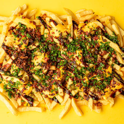 Frytki, sos serowy, bekon, szczypiorek, jalapeno